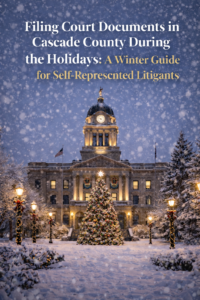 Filing court documents around the holidays requires extra care. Court rules still apply, clerk’s offices may be closed, and small mistakes can cause delays at exactly the wrong time. This guide walks through what self-represented litigants need to know when filing in Cascade County, with special attention to the realities of late-December filings.